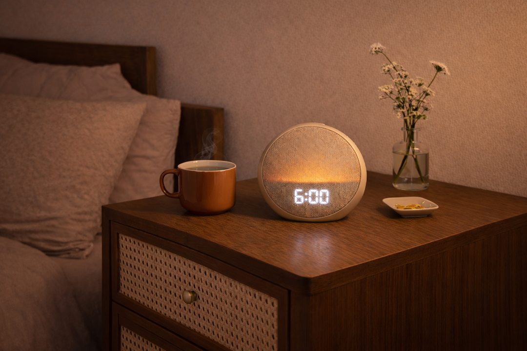 Liōs est un réveil lumineux qui prépare ton corps à se réveiller grâce à une lumière progressive qui s’allume avant que l’alarme ne sonne, pour des matins plus doux et plus faciles dès la première utilisation.